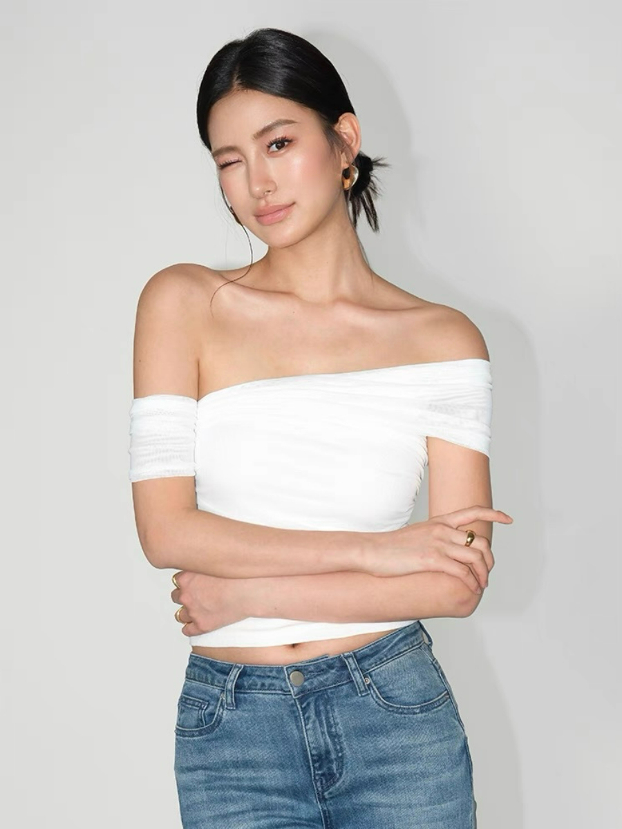Stay stylish with our best-selling off-shoulder mesh top – lightweight, breathable, and perfect for any occasion. Available in Size-S, M, L and XL.