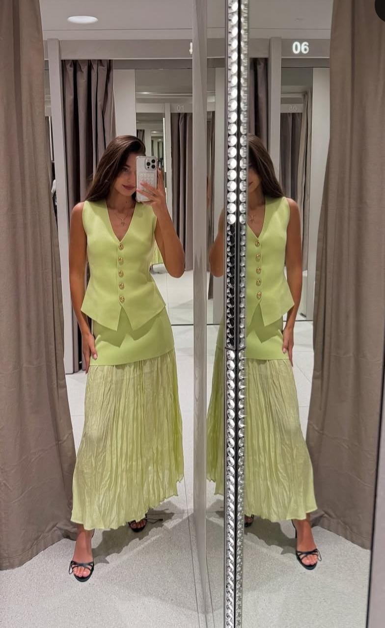 Elevate your wardrobe with this stylish 2-piece co-ord set featuring a tailored vest and matching skirt. Crafted from slightly stretchable fabric for a comfortable fit, this set is perfect for casual outings or semi-formal occasions. Available in sizes S, M and L,XL .