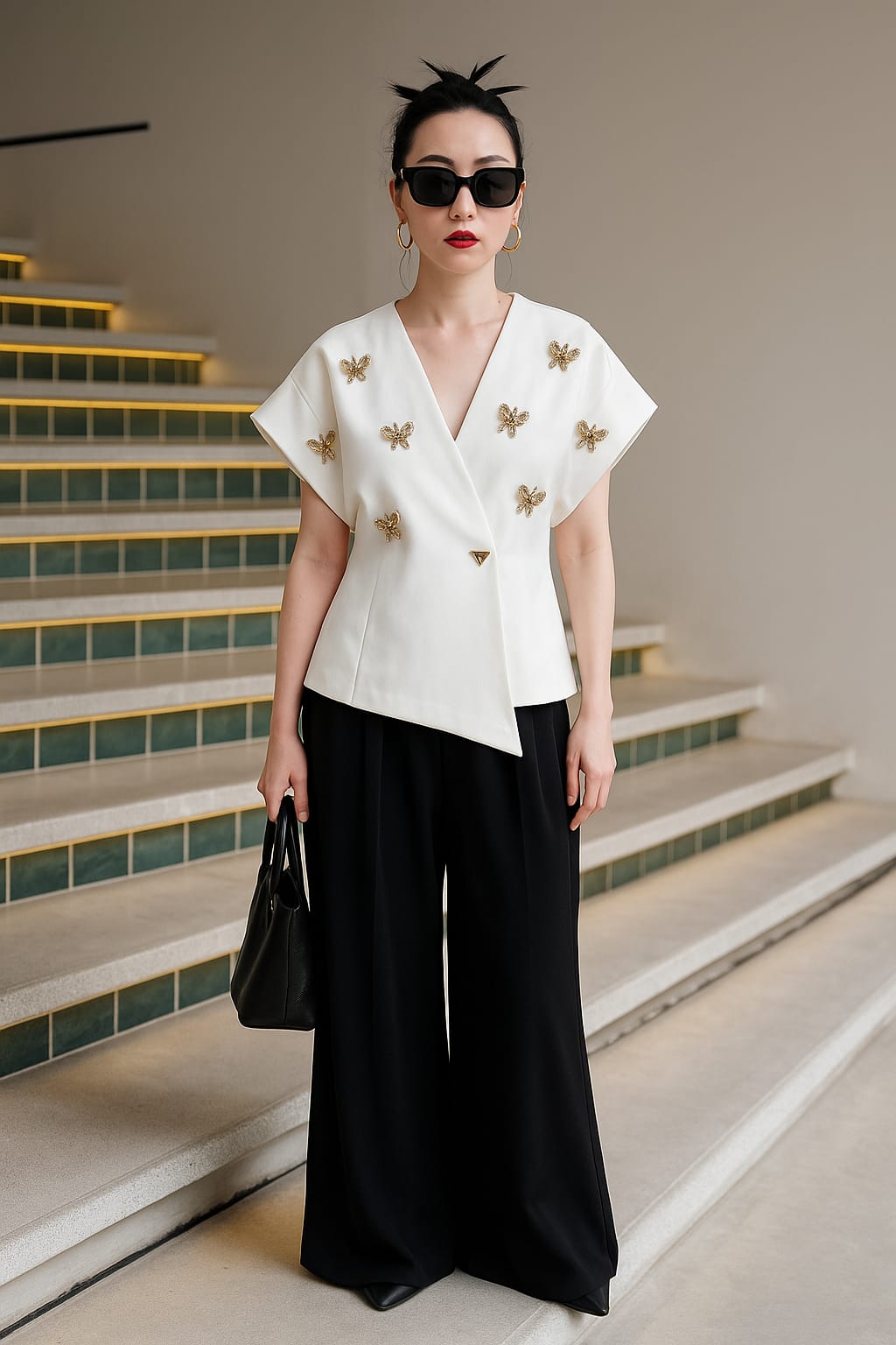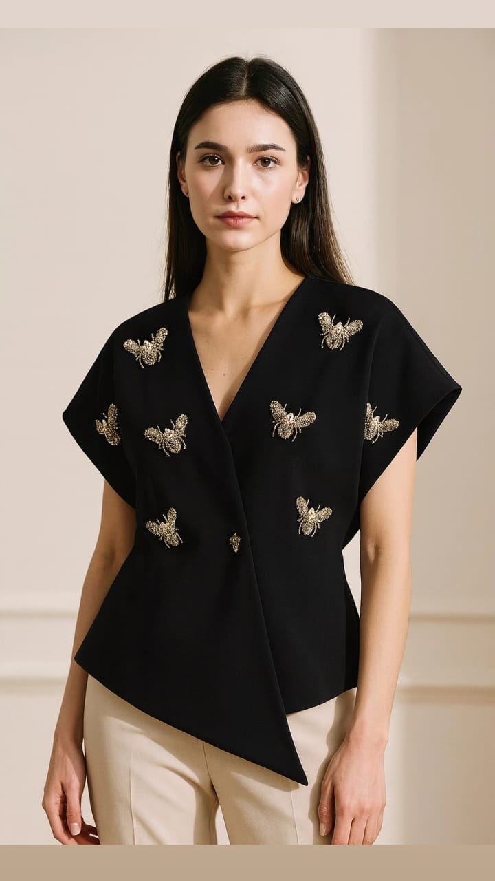 Upgrade your wardrobe with this designer embellished blazer for women, crafted in a trendy new pattern. Ideal for festive events, parties, and formal occasions, this blazer combines style and comfort. Available in two elegant colors, it fits perfectly for sizes,-S, M, L, and XL.