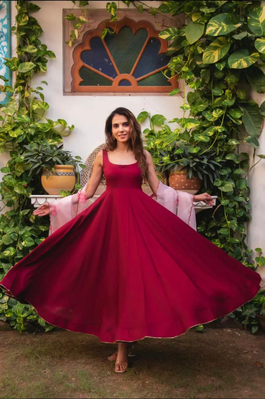 Anarkali Fabric: Pure Chinon, huge flair for elegant drape