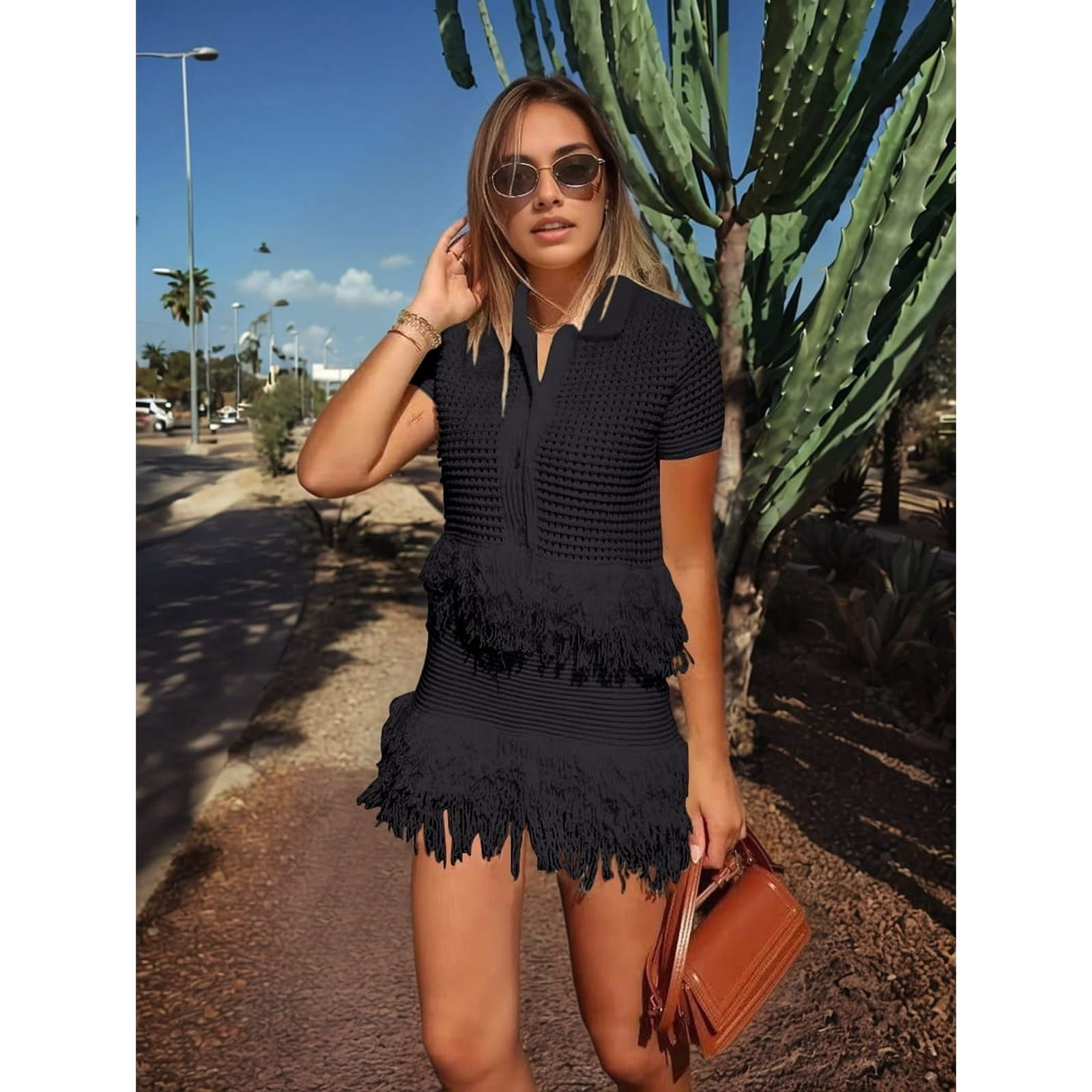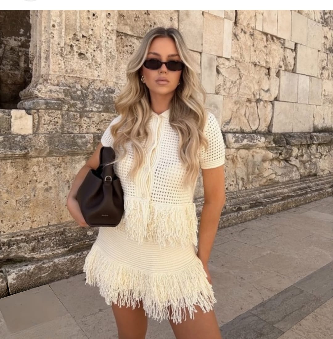 Make a bold statement in this fringe-detailed co-ord set featuring a stylish top and matching skirt. Designed to move with you, it blends drama with elegance—perfect for parties, night-outs, and special occasions.