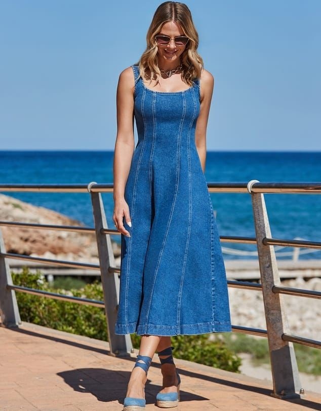 A timeless denim essential designed with a structured yet flattering fit. Effortlessly versatile, this dress pairs perfectly with sneakers for daywear or heels for a chic evening look. Comfortable, stylish, and made for everyday confidence.