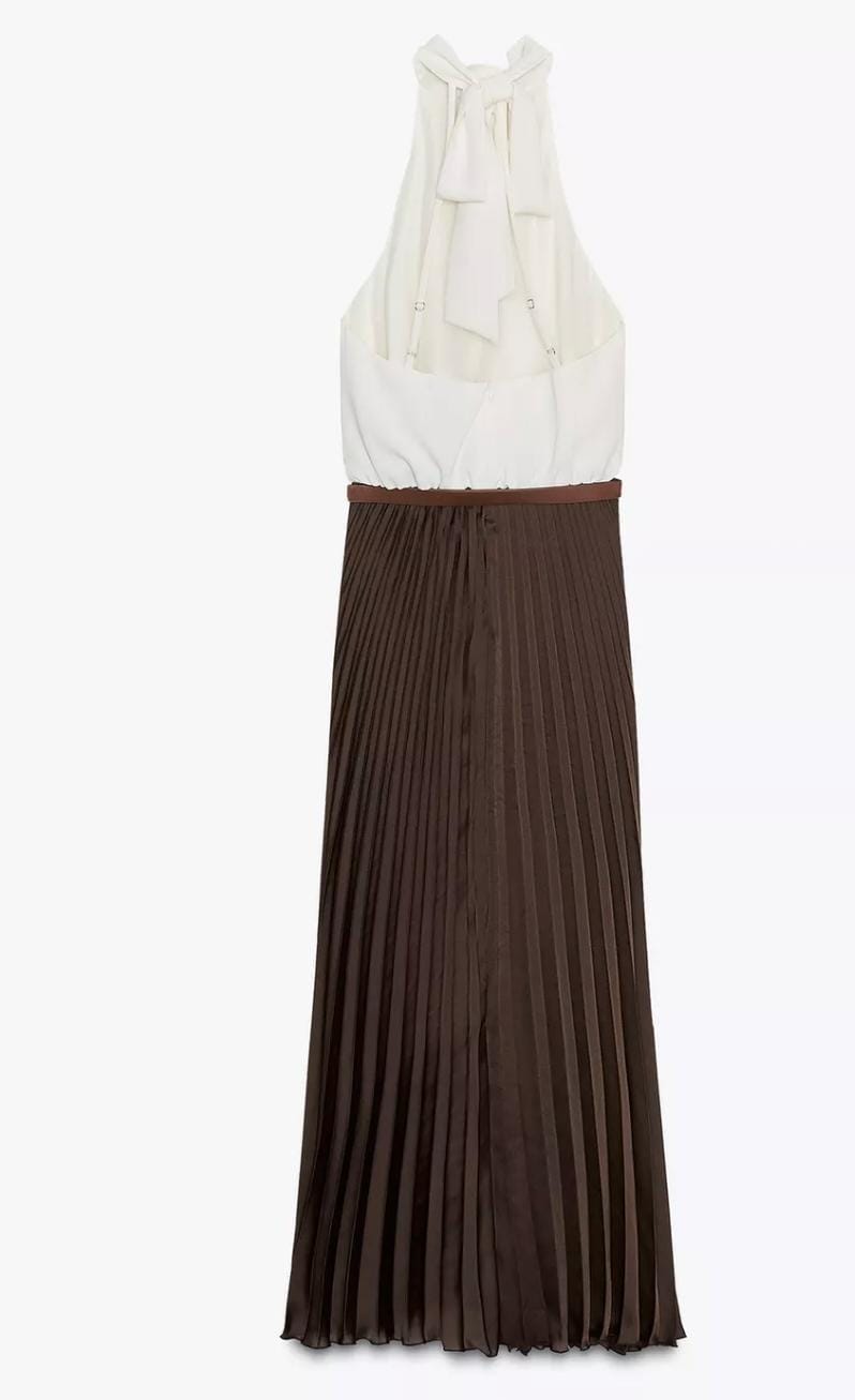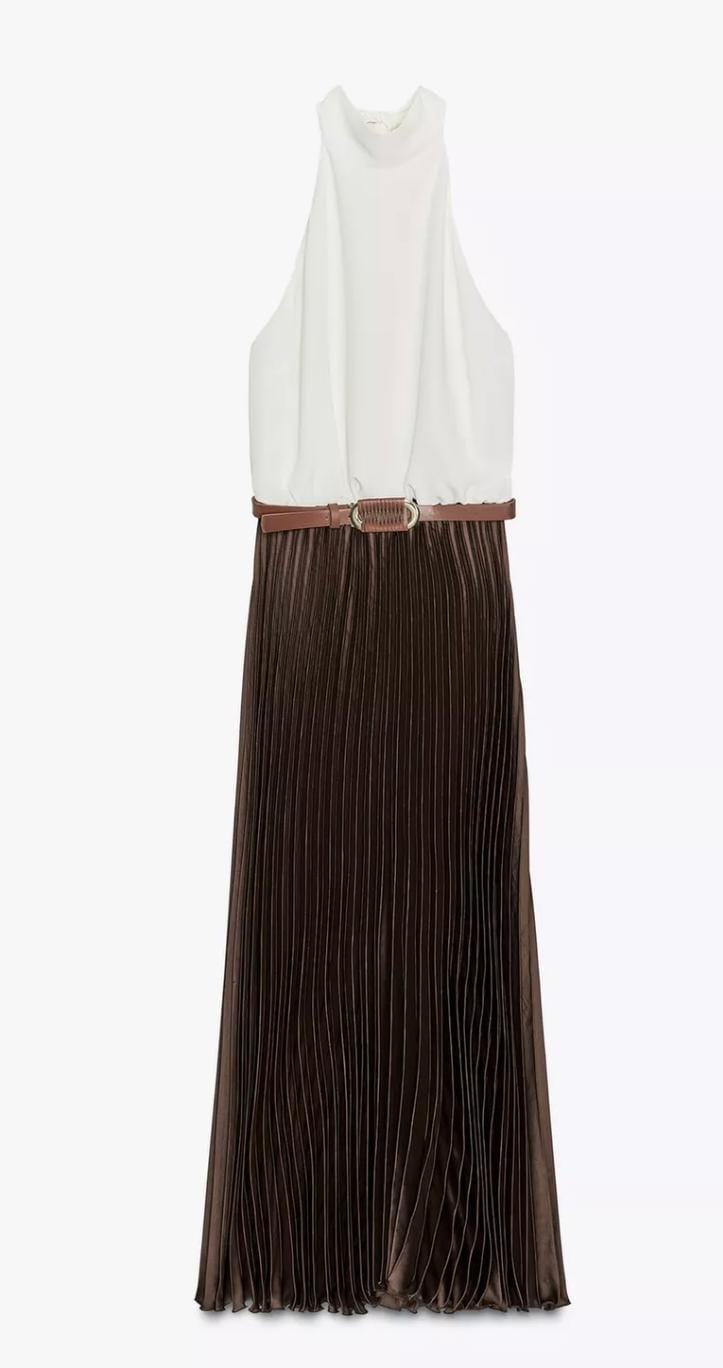 Chic combination pleated dress in sizes-S,M,l,XL with elastic waist for comfort. Fits bust up to 38-39 inches. Comes with a stylish belt to complete the look. Perfect for casual to semi-formal occasions.