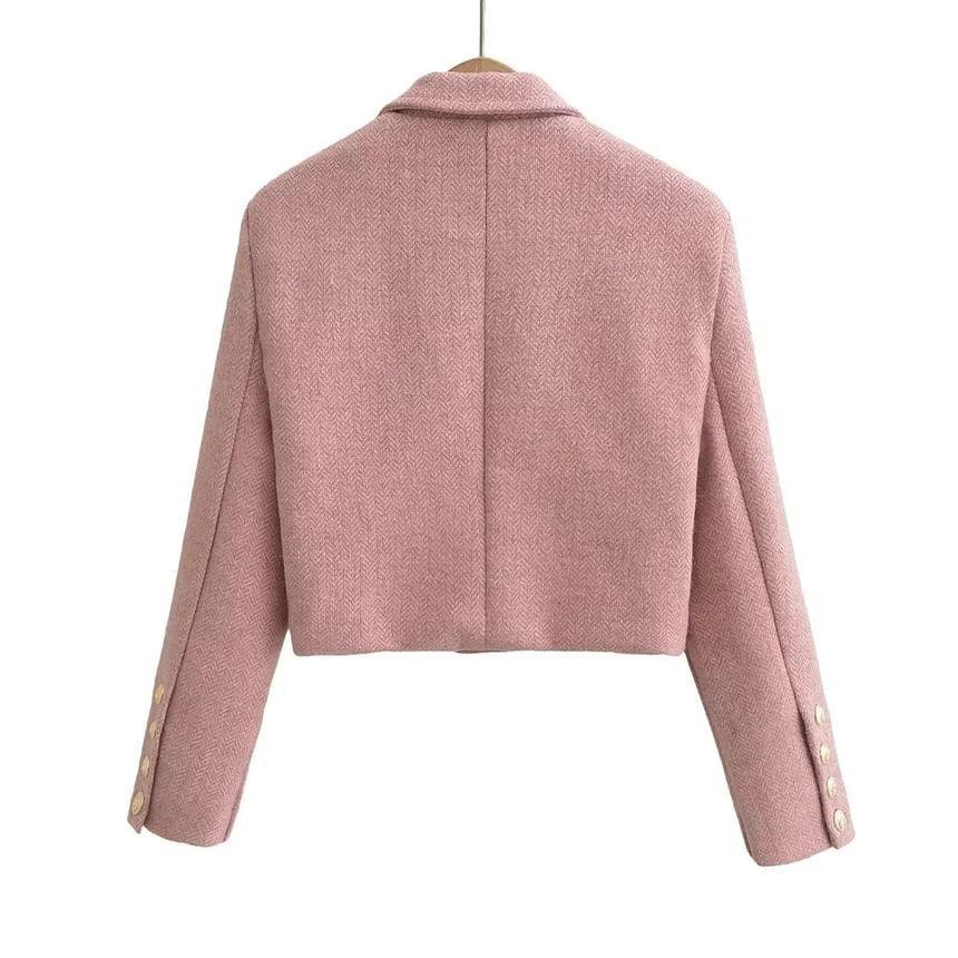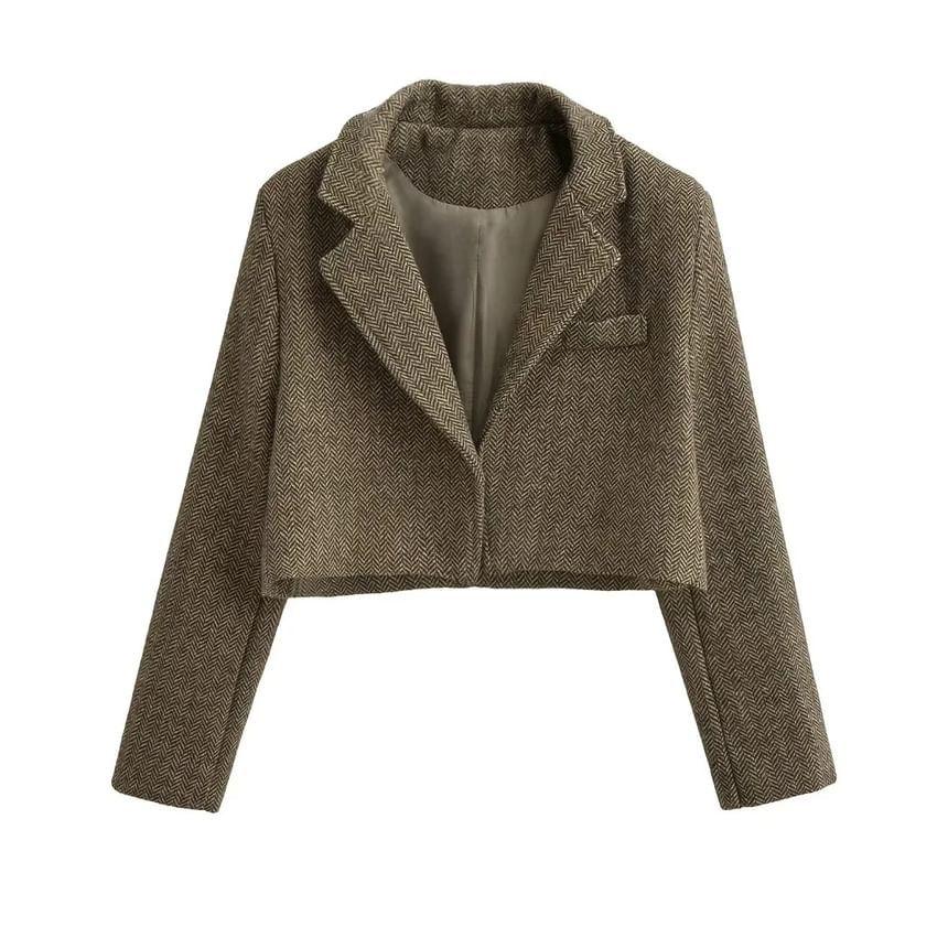 Elevate your style with this chic cropped blazer in nude and olive. Made from premium textured fabric, it offers a modern fit and size comfort (S, M, L and, XL). Ideal for casual or workwear layering.