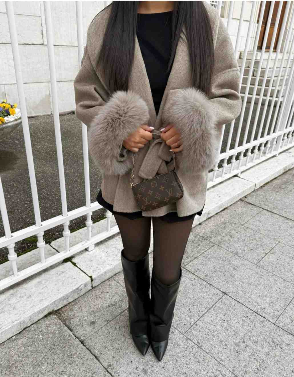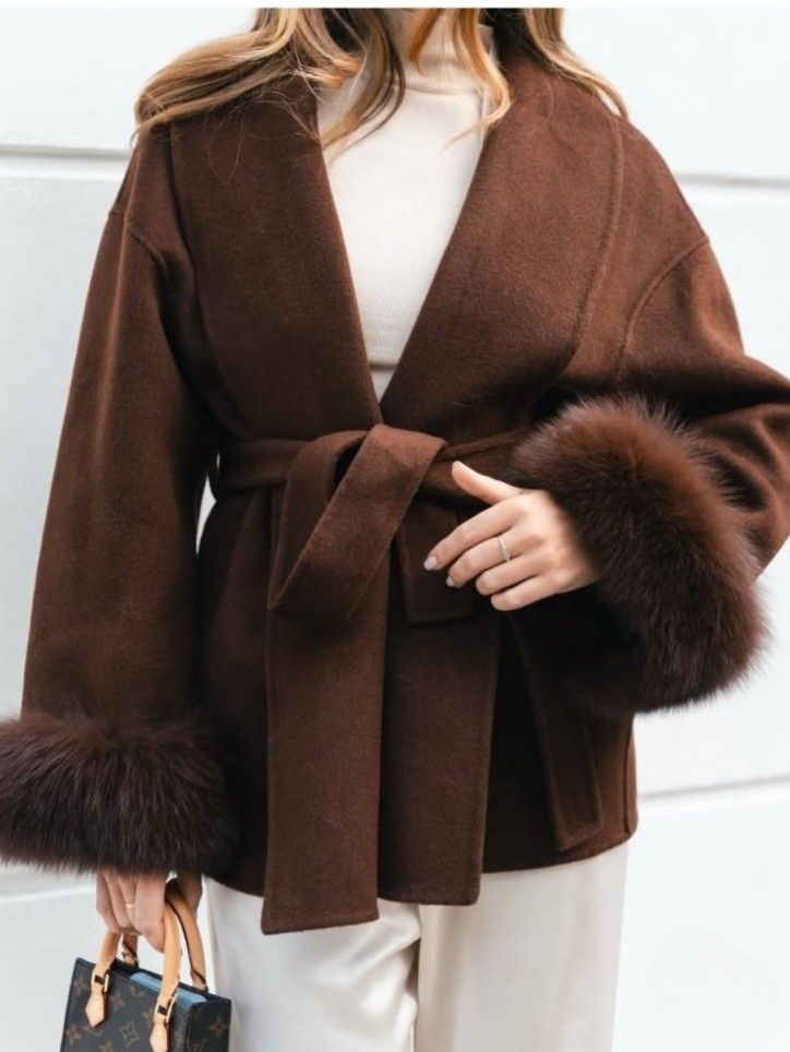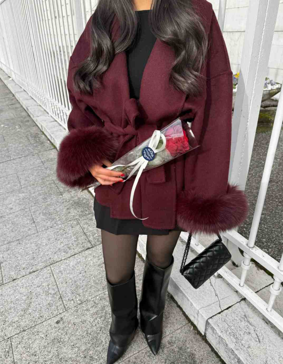 Experience winter luxury with this rich wrap jacket featuring plush fur cuffs and a soft, elegant drape. Designed in Size-S,M,L,XL for effortless styling and all-day comfort, it adds instant sophistication to any outfit.