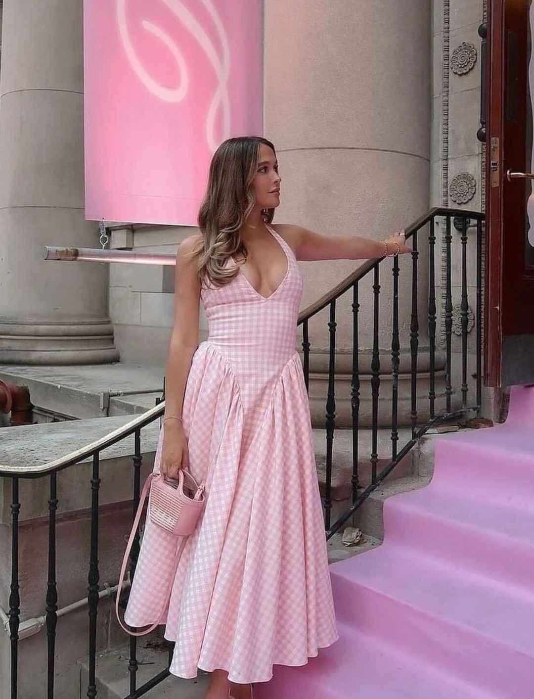A chic halter neck midi dress designed to accentuate your shoulders and create a sleek, elongated silhouette. The elegant fall flatters your shape while keeping the look refined and feminine. Perfect for dinners, parties, and special occasions.