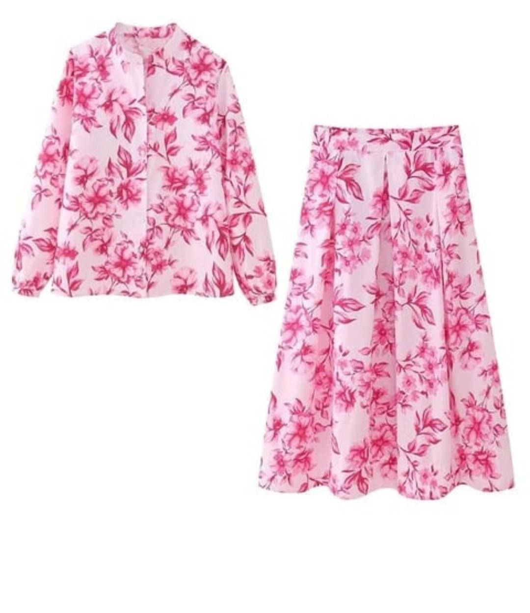 Elevate your everyday style with this chic floral co-ord set featuring a relaxed shirt and a flattering skirt. Perfect for brunches, vacations, and summer outings — comfortable, feminine, and effortlessly stylish.