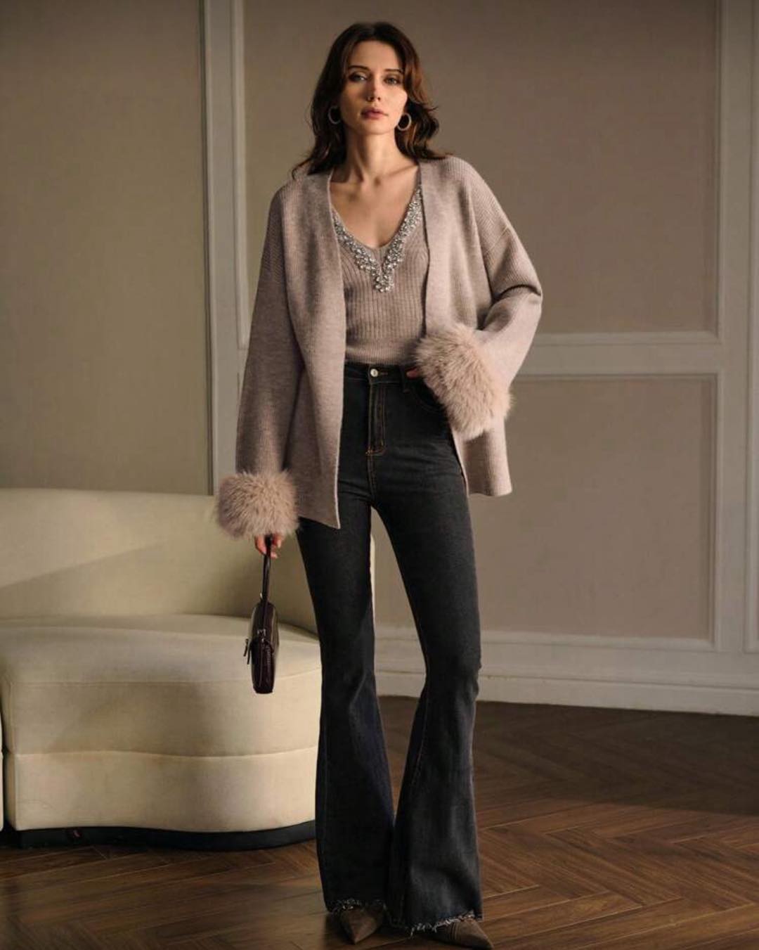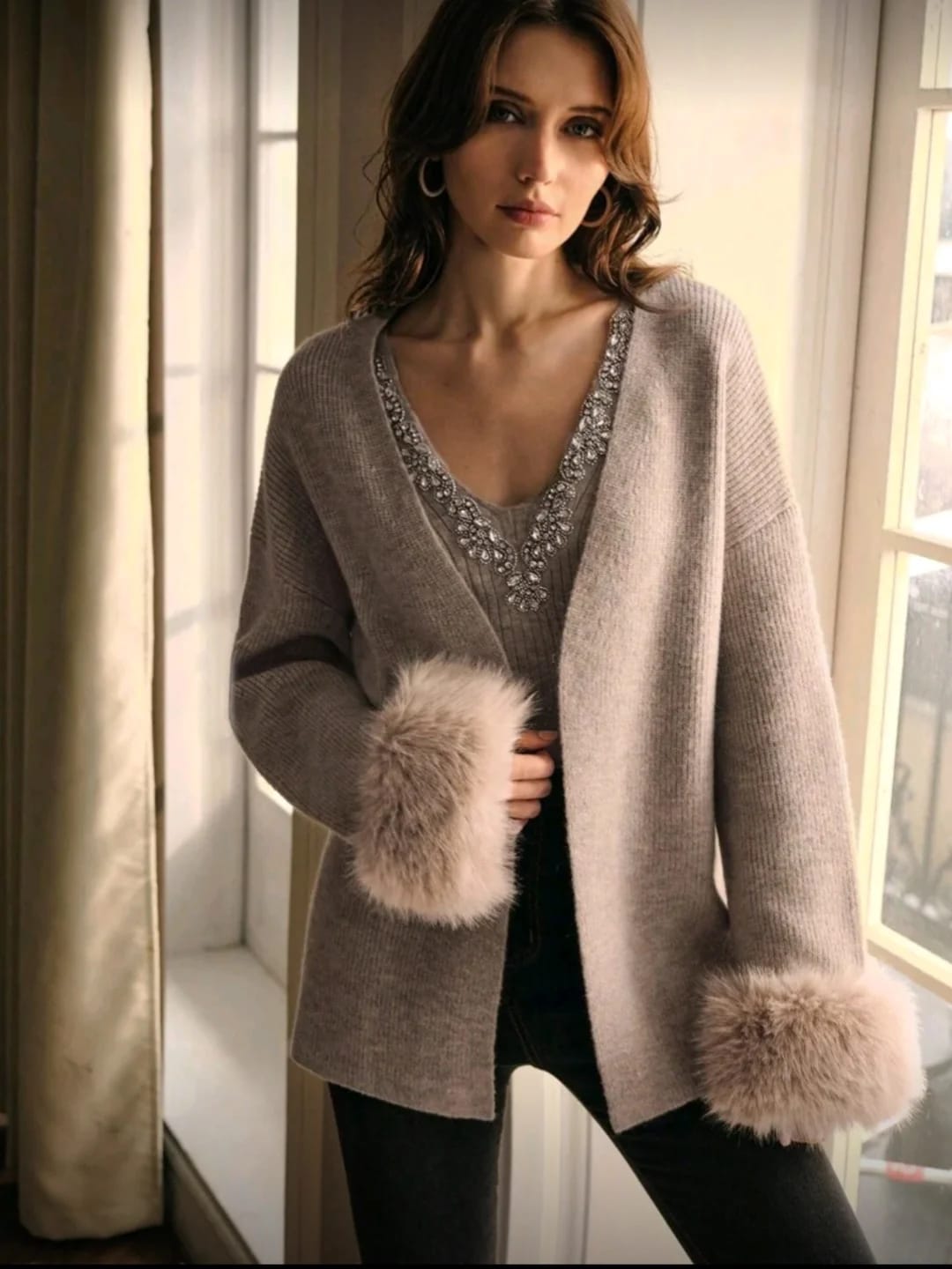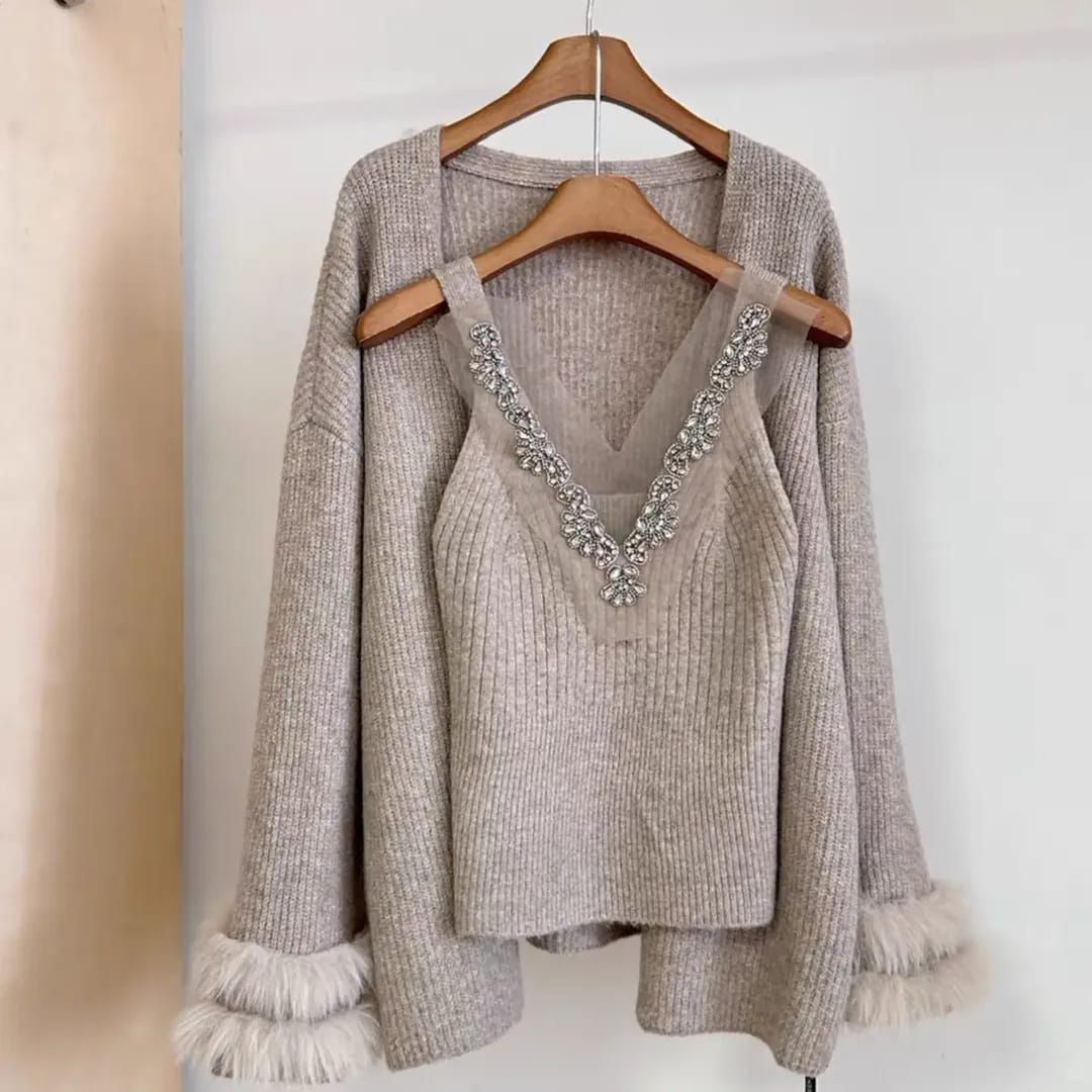 Elevate your style with this jeweled knit top, featuring a sparkling embellished neckline and soft stretchable fabric for a perfect fit. Elegant, cozy, and effortlessly chic — ideal for both casual glam and evening sophistication.