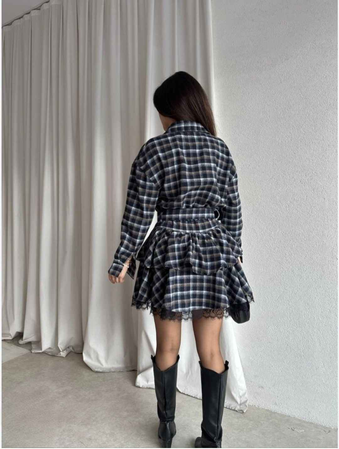 Step into effortless elegance with this plaid belted dress featuring delicate lace detailing. Designed in classic hues, it cinches the waist for a flattering silhouette—perfect for both casual outings and chic daywear looks.