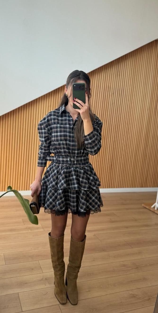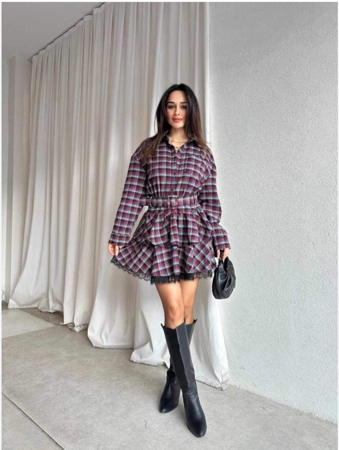 Turn heads in this chic plaid dress featuring delicate lace accents and a flattering waist belt. Designed in elegant Available in Size-S,M,L,XL it offers a perfect fit for effortless day-to-evening style.