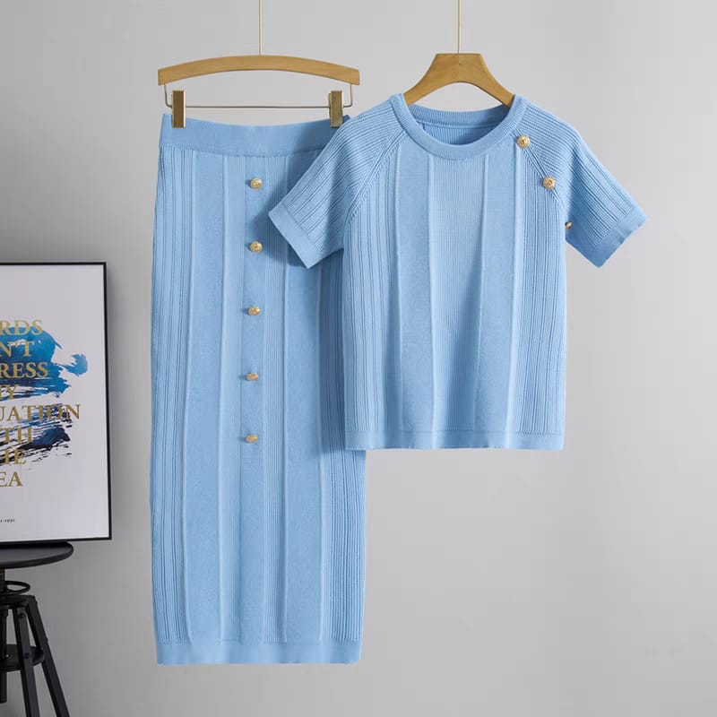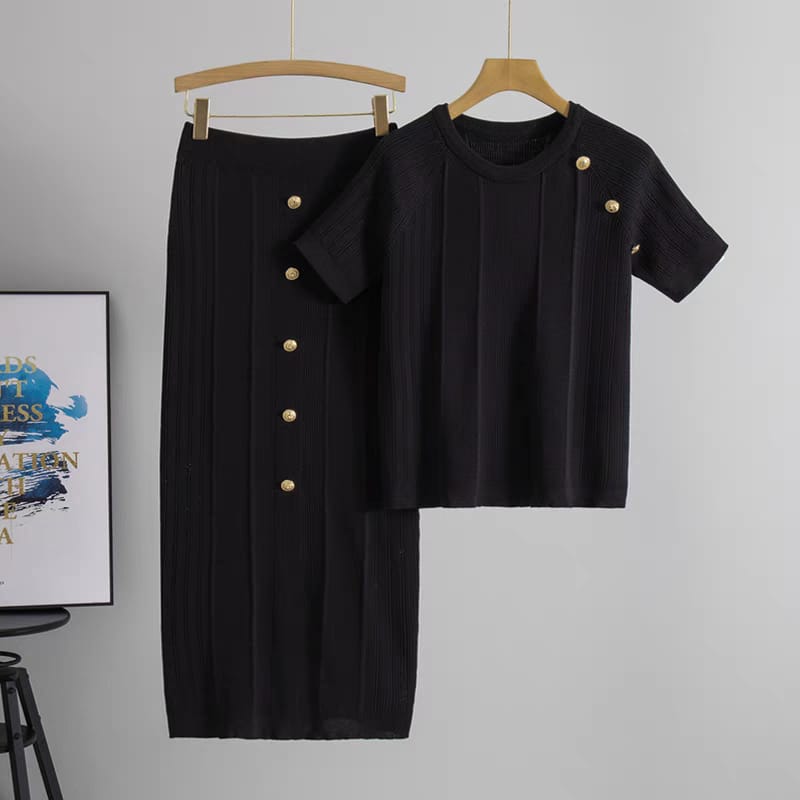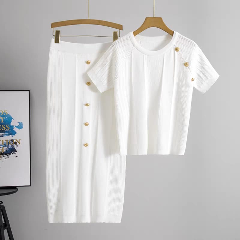 Featuring a soft knitted fabric, this skirt and top set offers effortless style. Perfect for casual days or elevated evenings. Stretchable, breathable, and flattering.