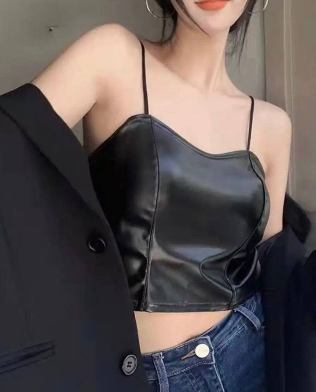 Elevate your wardrobe with the Luxe Edge Leather Top, a statement piece that blends boldness with sophistication. Designed with self-padding for a structured look and an elasticated back for a comfortable fit, this top is perfect for both casual and dressy occasions.