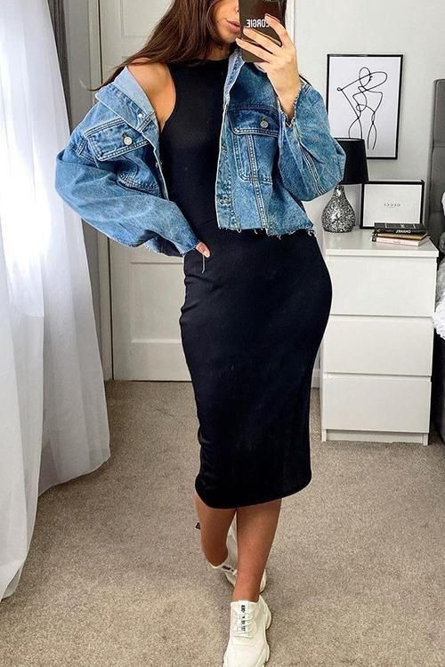 Upgrade your wardrobe with this versatile Blue Denim Jacket paired with a figure-flattering Ribbed Dress. The jacket features a classic, structured fit perfect for layering, while the ribbed dress offers comfortable stretch and a sleek silhouette. Ideal for casual outings or chic day-to-night looks.