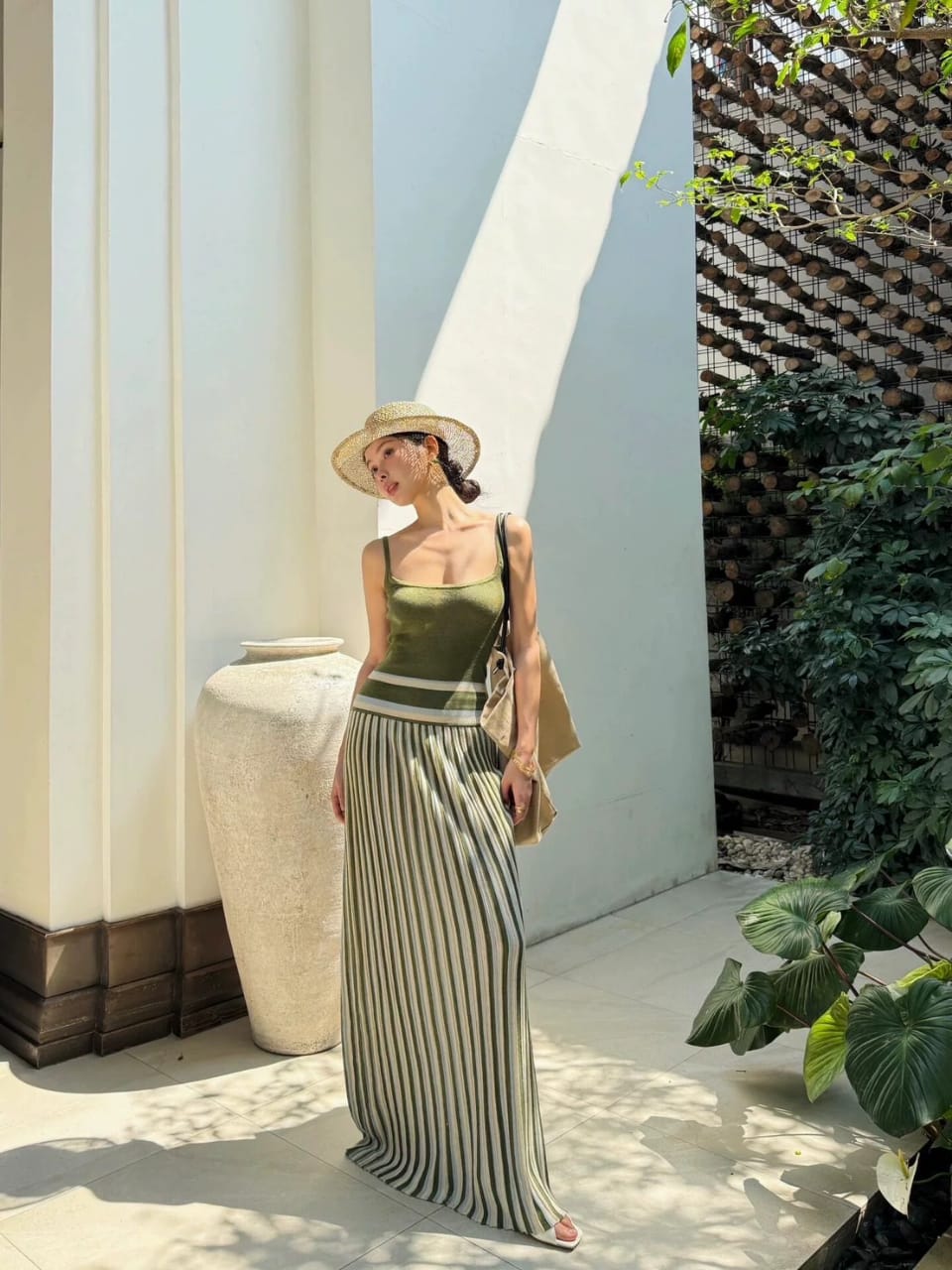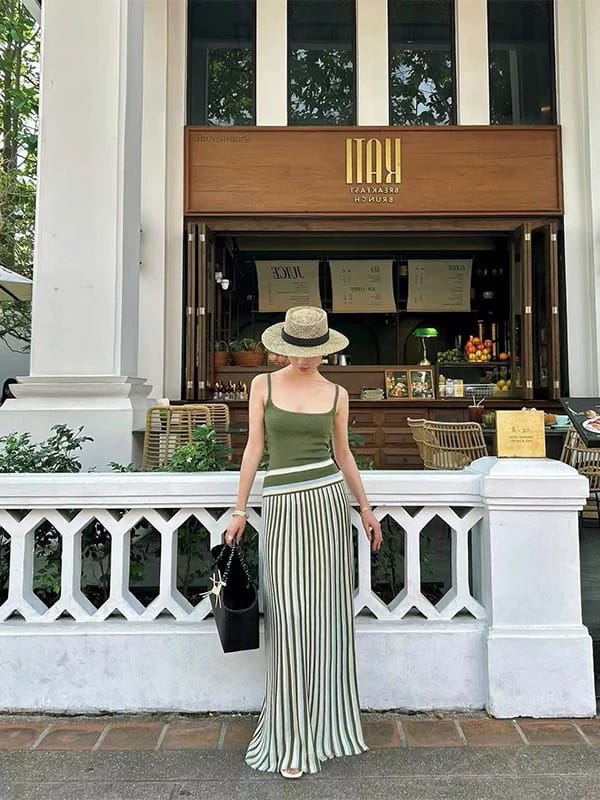 This Long knitted dress features a sleek silhouette, premium stretch fabric, and subtle pleat detailing for a refined inspired look. Perfect for brunches or evenings out — elegance made easy.