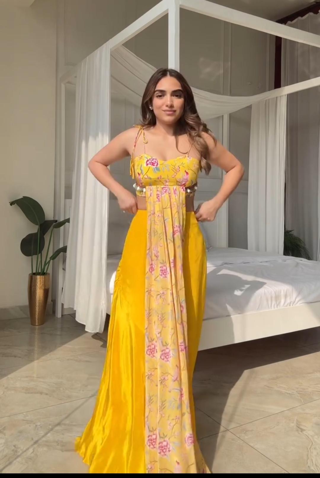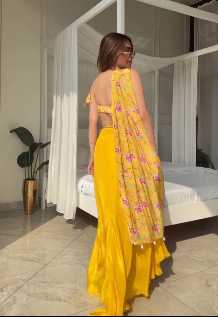 Elevate your ethnic style with this ready-to-wear organza blouse with attached dupatta. Crafted from premium Jimmy Organza, this designer blouse offers a perfect blend of elegance and convenience. The unique attached dupatta adds a graceful drape, making it ideal for weddings, festivals, or party wear.Available in Size-S, M, L and XL.