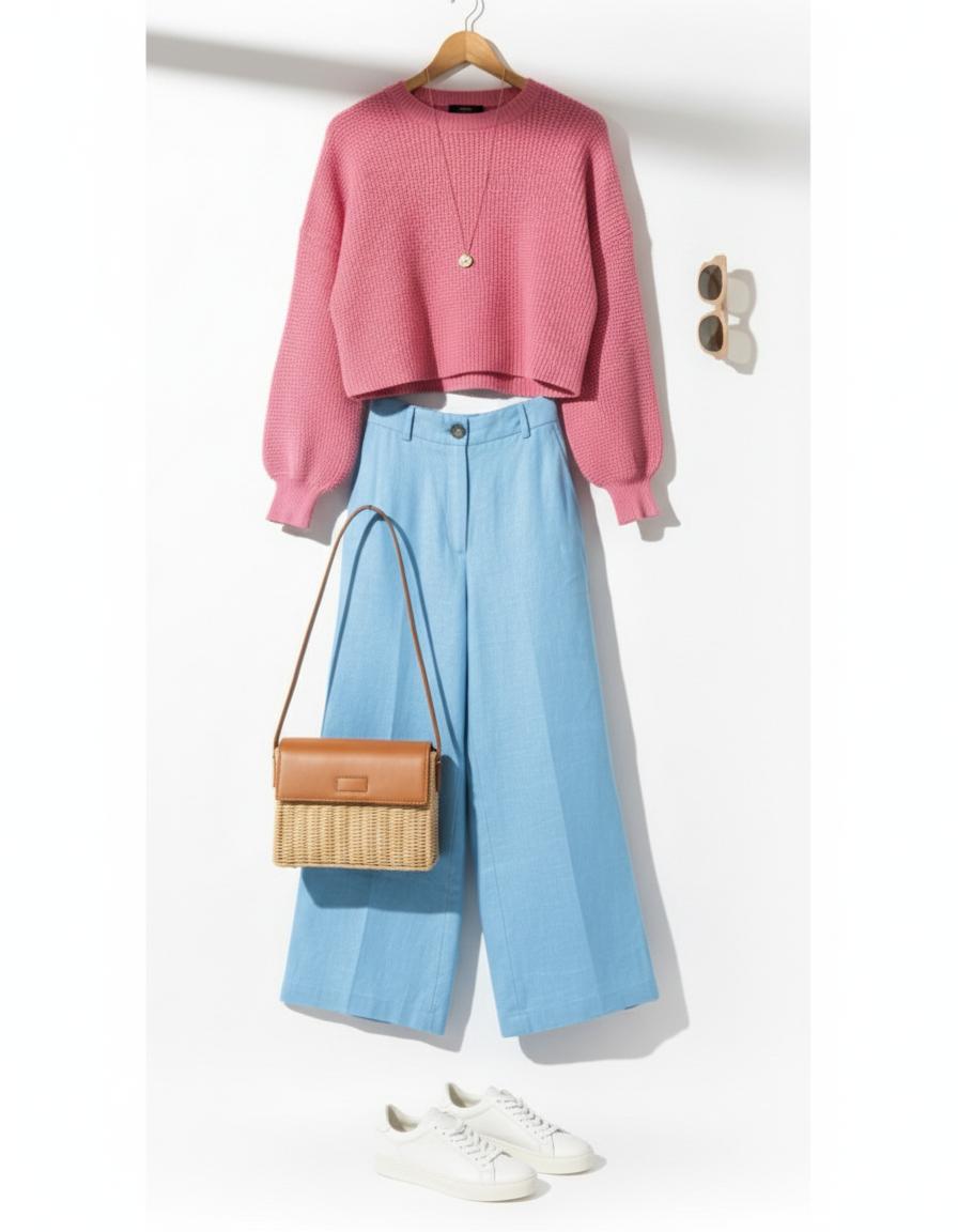 Lookbook - includes highwaist trouser with pink knitted sweater
