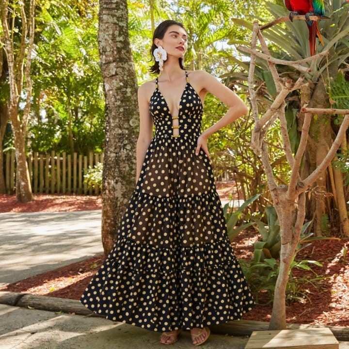A playful yet elegant two-piece set featuring a breezy polka dot flared skirt paired with a sleek, body-hugging bodysuit. Designed to enhance your silhouette while keeping the look effortless and vacation-ready.