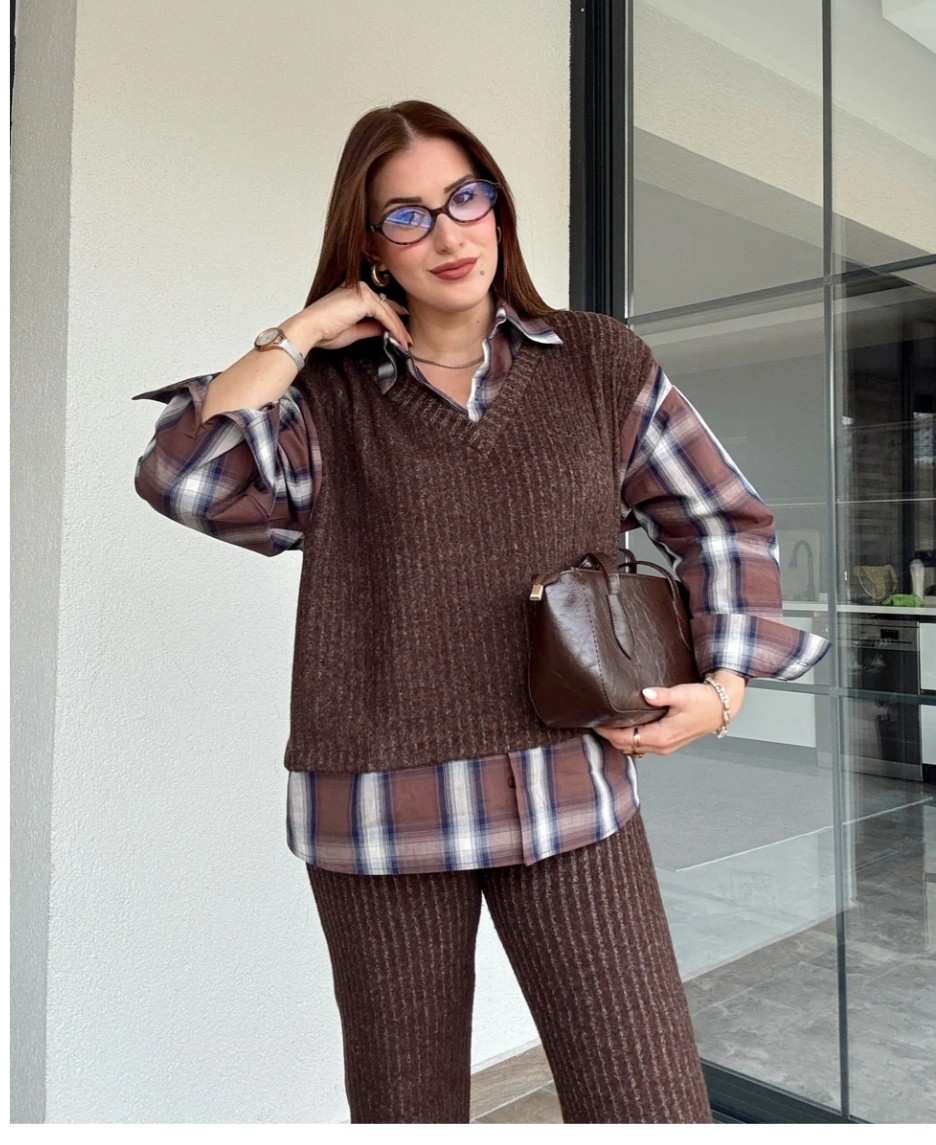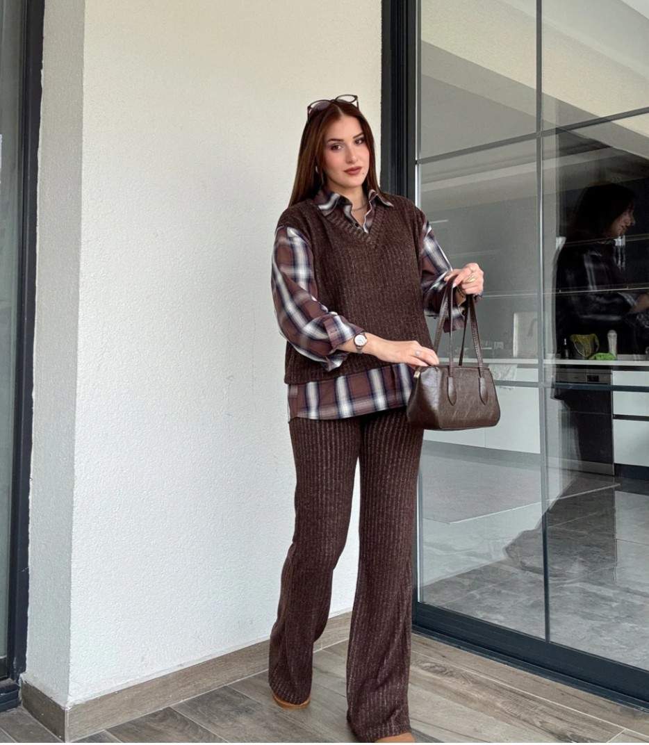 Upgrade your style with this chic Ribbed & Plaid Coord Set, featuring a soft ribbed top and stylish plaid bottoms. Designed for comfort and everyday elegance, this Size -S,M,K,XL set is with perfect for effortless fashion.