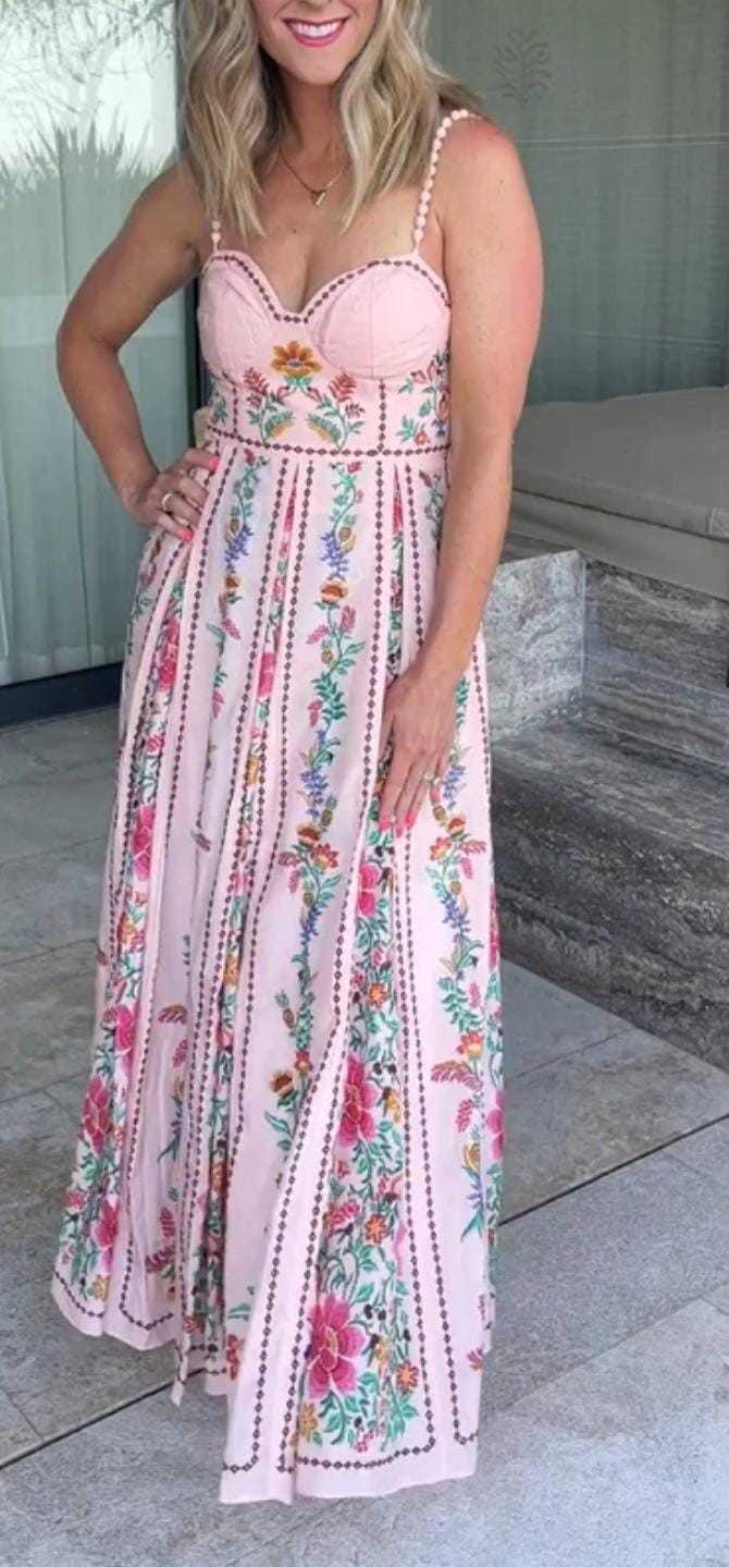 Effortlessly elegant maxi dress crafted in soft, flowy fabric with a flattering silhouette. Features delicate floral prints, breathable comfort, and a graceful fall—perfect for brunches, vacations, or evening outings.