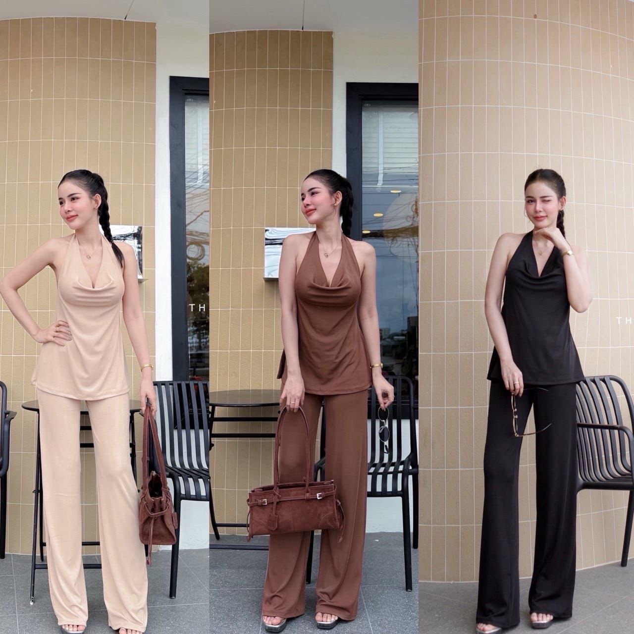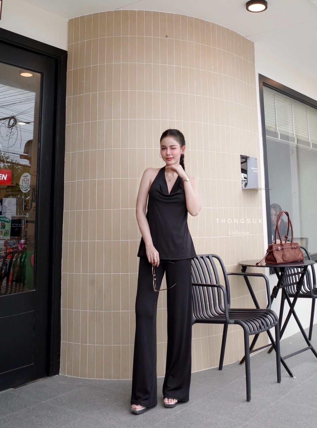 Elevate your style with this glamorous backless halter neck co-ord set, featuring a smocked stretchy top and high-waisted straight-leg pants. Crafted from premium, breathable fabric, this set offers a perfect blend of comfort and elegance. Available in Size-S , M, L and XL, ideal for casual outings, parties, or stylish daywear.