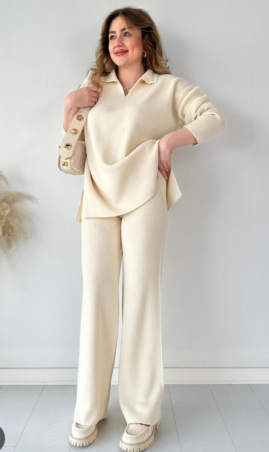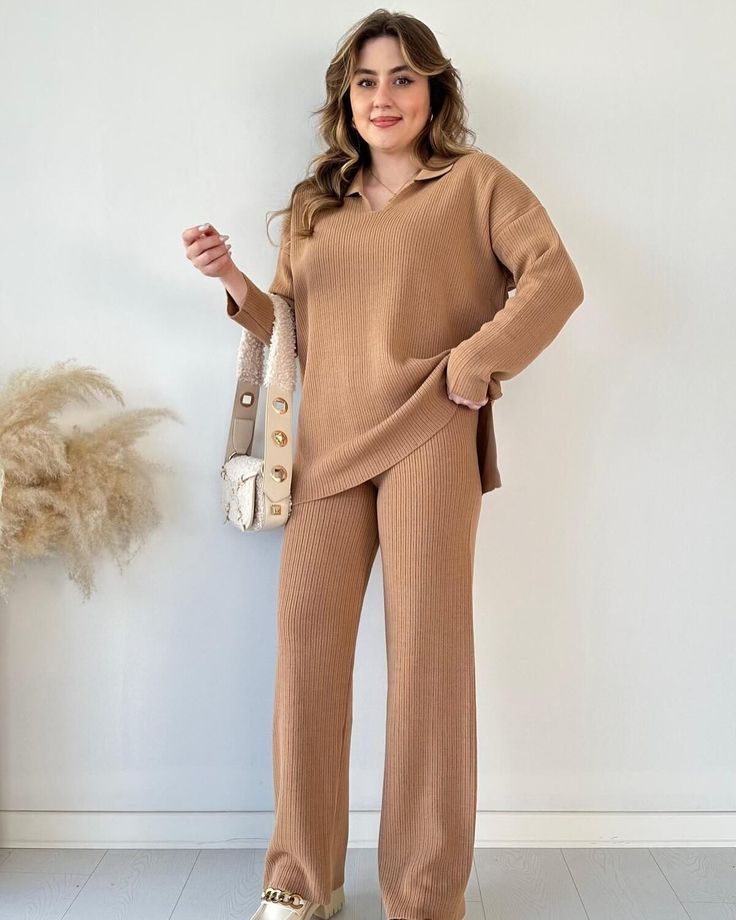 A chic V-neck collar co-ord set crafted in soft, premium knit for effortless style. Its flattering silhouette, smooth stretch, and four elegant shades make it a wardrobe must-have. Perfect for daily wear with a classy, modern touch.